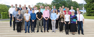 Bild 2: 17 Studierende haben erfolgreich ihr StudiumPlus absolviert. Mit ihren Mentoren und Dr. Karl-Ulrich Köhler, Vorsitzender der Geschäftsführung von Rittal, sowie Carsten Röttchen, Geschäftsführer Produktion bei Rittal, und Anke Wojtynowski-Scharf, die das Studium in der Friedhelm Loh Group in Kooperation mit der Technischen Hochschule Mittelhessen (THM) koordiniert, feierten sie jetzt ihre Zeugnisübergabe.
