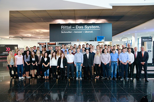 Das ‘Internet der Dinge’, die ‘Smart Factory’ und ‘Big Data’ – schon bei ihrer offiziellen Begrüßung waren die neuen Azubis der Friedhelm Loh Group mitten drin im aktuellen Geschehen in der Industriebranche. „Das sind Themen, die Sie in Ihrer Ausbildung in den nächsten Jahren ganz elementar begleiten werden“, so Dr. Thomas Steffen, Rittal Geschäftsführer Forschung und Entwicklung, der den neuen Jahrgang in der Unternehmensgruppe willkommen hieß: „Diese Schlagworte bedeuten, dass wir Ihnen einen interessanten und zukunftsorientierten Arbeitsplatz bieten, aber Ihnen auch einiges abverlangen – Leistung, Engagement und Enthusiasmus für Ihre Arbeit.“ Ein dynamisches Umfeld beim größten Arbeitgeber der Region Mittelhessen warte auf die angehenden Fachkräfte.