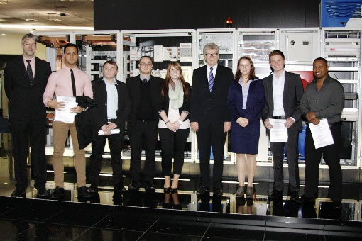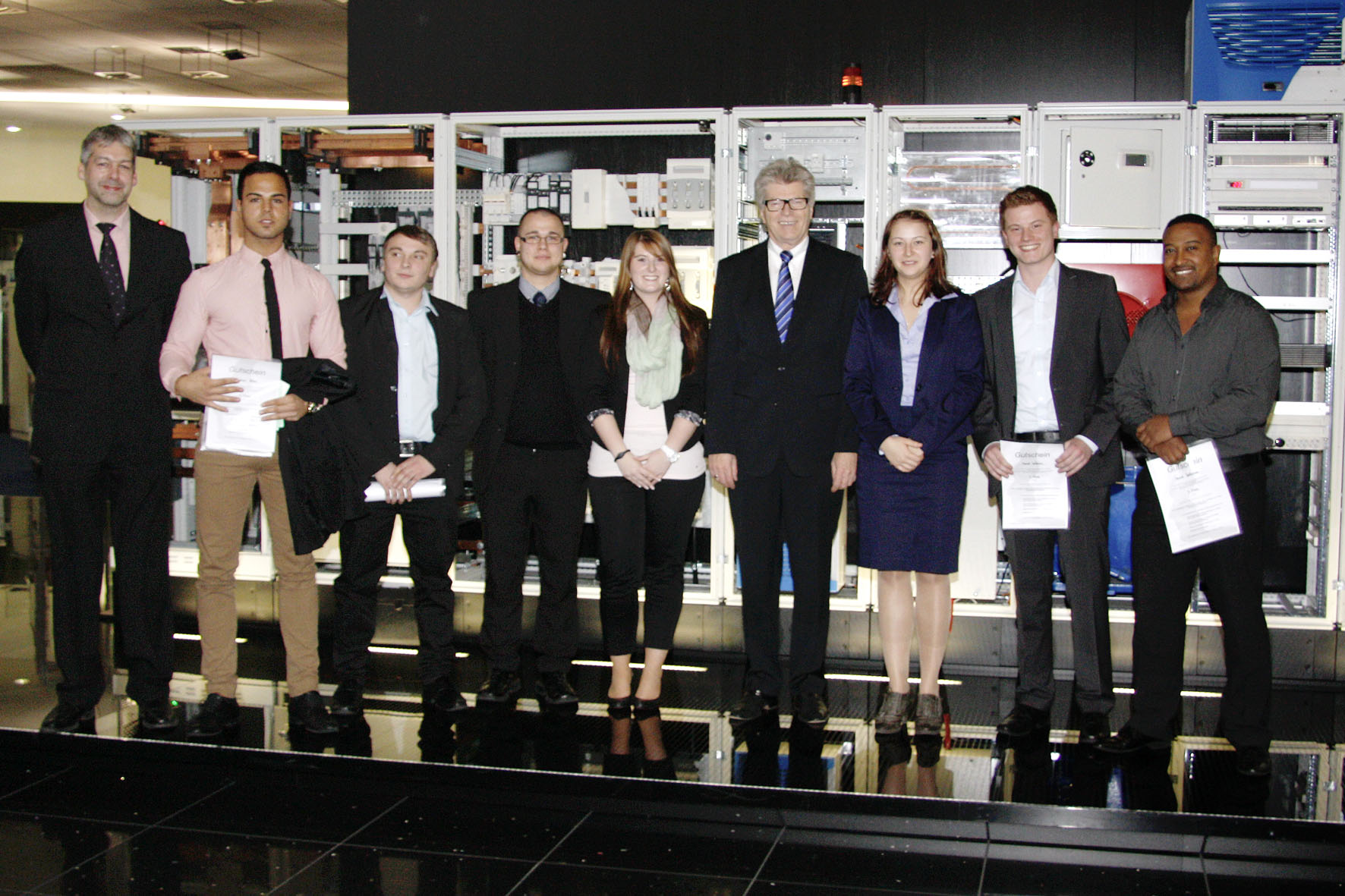 Bild 1: Freuten sich über den 1. Platz (v. l.): Mario Kacalla, Tolgahan Bilen, Eduard Huwa, Hannes Hermann, Tamara Weber, Friedhelm Loh, Valentina Herb, Marcel Valentin und Dawit Selemon.