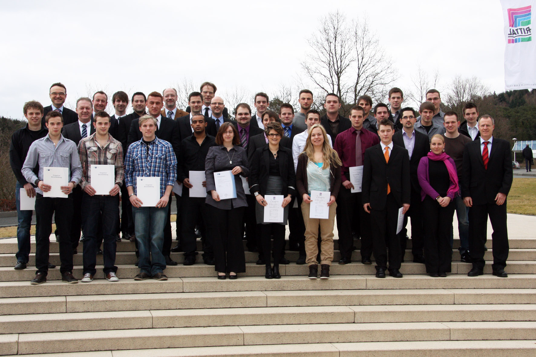 05.04.2012. Insgesamt 50 Auszubildende der Friedhelm Loh Group haben im Winter erfolgreich ihre Ausbildung beendet. 31 gewerblich-technische, 16 kaufmännische Auszubildende sowie 3 IT-Auszubildende sind nun bereit für den Sprung ins Berufsleben. In einem feierlichen Rahmen wurden den zukünftigen jungen Mitarbeitern die Ausbildungszeugnisse überreicht.