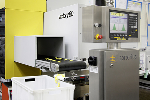 "Die besondere Herausforderung bestand darin, die hohen Anforderungen an die Wägetoleranz in einem dynamischen Prozess umzusetzen", erklärt Geza Lehnert, Regional Sales Manager bei Sartorius. "Das ist mit der Kontrollwaage EWK 3010 gelungen. Sie wurde mit einer speziellen Start-Stopp-Automatik ausgestattet und gewährleistet dank Quereinbau die sichere Trennung von Gut-Produkt und Ausschuss. Unsere Lösung ermöglicht die sichere Einhaltung der geforderten Prozesstoleranzen sowie die schnelle und effektive Überwachung des Qualitätsprozesses."