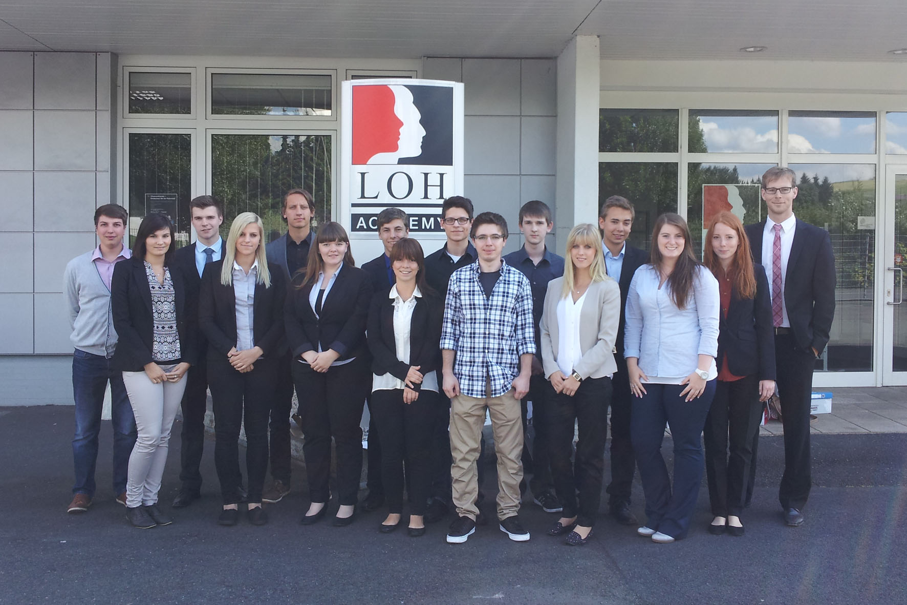BildmaterialBild 1: Die neuen Studierenden der Friedhelm Loh Group (von links): Florian Köstler, Giulia Rossner, Julian Schupp, Viviane Schneider, Felix Michel, Jennifer Uhlig, Colin Blöcher, Diana Eckhardt, Sebastian Hofmann, Thomas Berchmüller, Christian Speer, Marie Habicht, Jonas Debus, Tamara Weber, Simone Jörren. Ganz rechts: Daniel Wirth, Personalentwickler, Loh Academy.