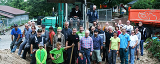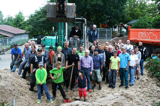 Unter der Bauleitung von Petra Rockensüß, der Vorsitzenden des Schulelternbeirats, ging es auf dem Gelände der Roßbachtalschule mit einem geliehenen Bagger und einem Kettensägen-Spezialisten zur Sache. Die gut gelaunten und emsig werkelnden Helfer lösten Palisaden, lockerten das Fundament der bisherigen Spielgeräte und befreiten den Boden von schweren Pflastersteinen: "Was die Mitarbeiter heute beim Entfernen der bereits seit 35 Jahren verankerten Geräte leisten, ist echte Knochenarbeit und eine tolle Sache", freute sich Rockensüß. Auch Presse, Elternbeirat und Schulleitung zeigten sich vom Teamgeist der Rittaler begeistert.