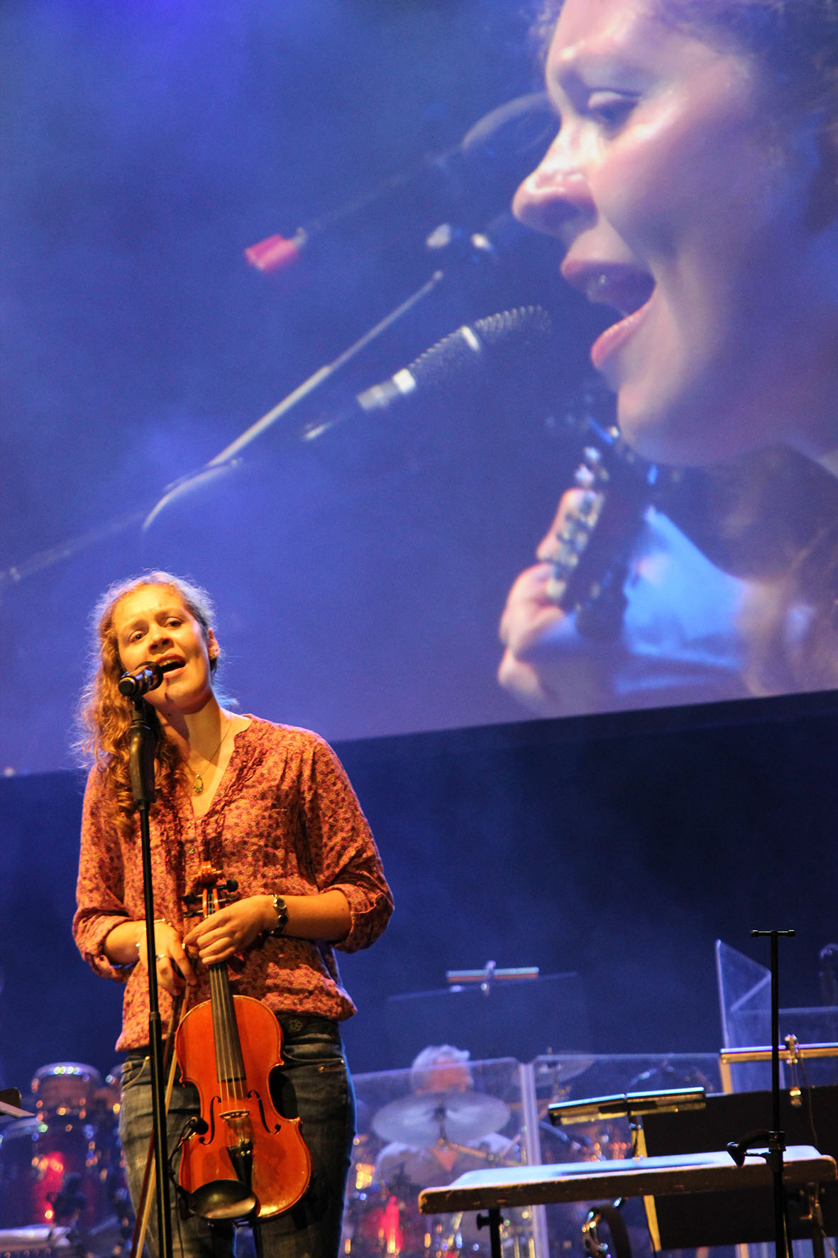 Im zweiten Teil der Veranstaltung gehörte die Bühne Jördis Tielsch und ihrer Band. Die 19-jährige Spitzenmusikerin aus der Gemeinde Sinn im Lahn-Dill-Kreis verzauberte das Publikum an der Geige und mit ihrer rauchig-melancholischen Stimme. Neben Interpretationen bekannter Lieder präsentierte sie auch eigene, ausdrucksstarke Songs. In ihren ehrlichen Texten spiegelt sich eine ausgeprägte Reflexionsfähigkeit auf die kleinen, versteckten Momente des Lebens.