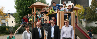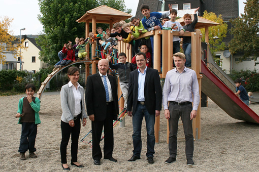 Die Rittal Foundation hat sich unter anderem die Förderung von Kindern und Jugendlichen zum Ziel gesetzt und den Spielplatzneubau mit einer Spende von 1.000 Euro unterstützt. Weitere 6.000 Euro steuerte Friedhelm Loh, Stifter der Rittal Foundation, hinzu. Der Caritasverband übernahm die Anschaffung eines Trampolins, und Förderverein und Elternpflegschaft halfen ebenfalls tatkräftig mit. Alle Baumaßnahmen bis zur Lieferung der Spielgeräte besorgte die Firma Willi Lauber kostenlos.
