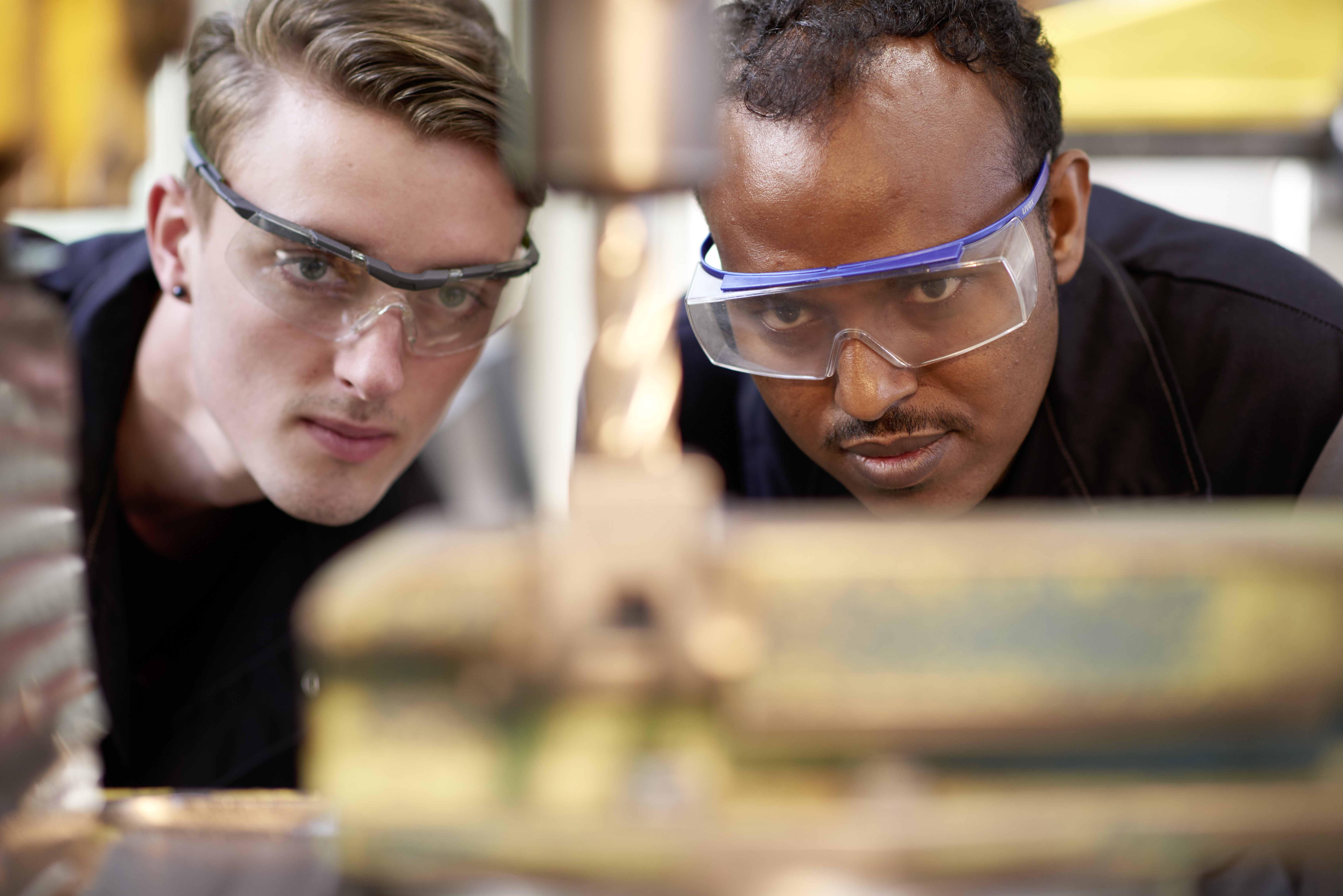Bild 2: Khaibar Fatehzada (m.), der dank des Projekts der Friedhelm Loh Group im vergangenen Jahr seine Ausbildung bei Rittal beginnen konnte, hilft jetzt seinen neuen Kollegen beim Einstieg in die Arbeitswelt der Industrie.