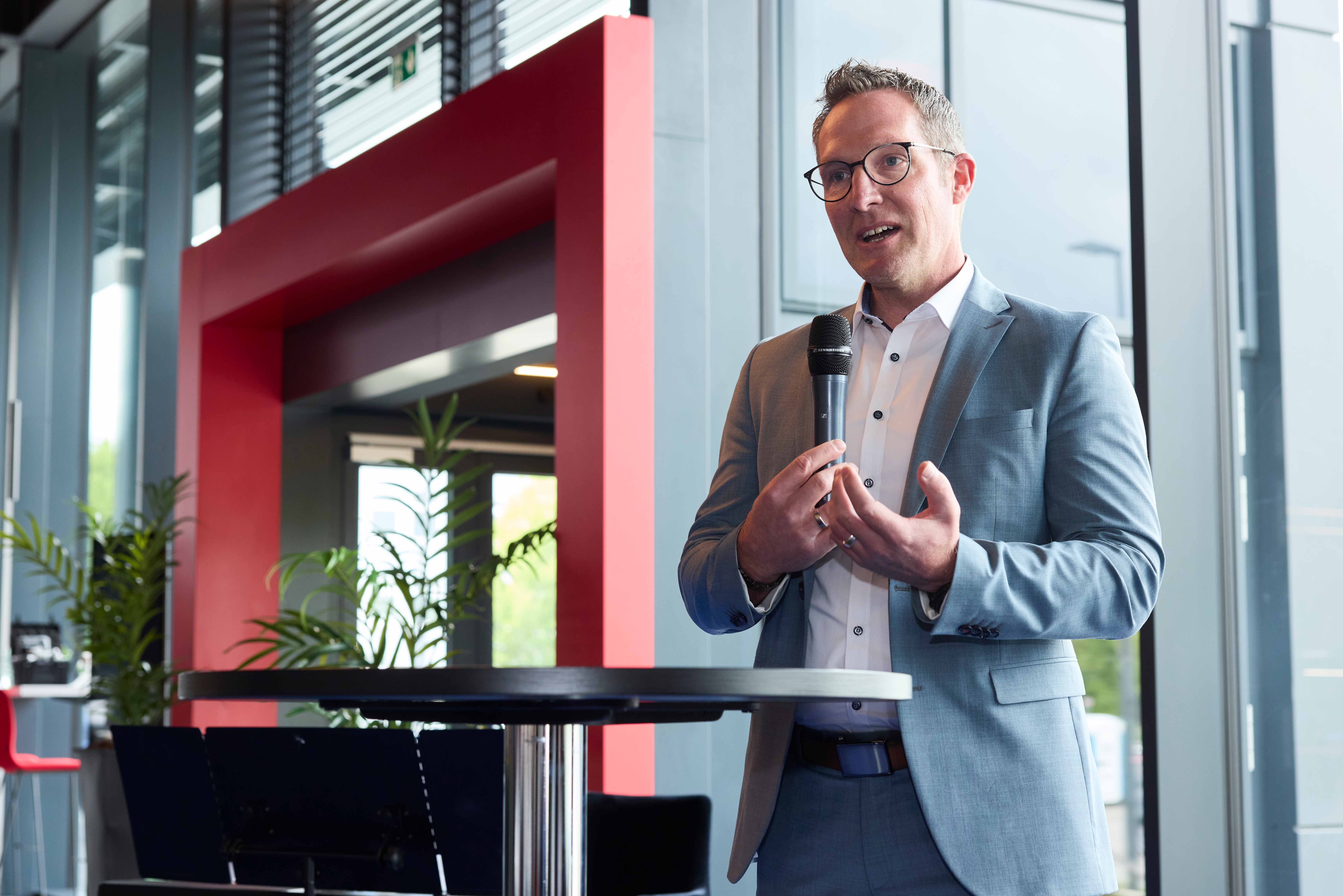 Bild 4: Landrat des Lahn-Dill-Kreises, Carsten Braun: „Ich bin Ihnen dankbar für das klare Bekenntnis der Unternehmensgruppe zum Standort Haiger und zur Region an Lahn und Dill. Das ist nicht selbstverständlich und das wissen wir alle sehr zu schätzen.“ Haigers Bürgermeister Mario Schramm: „Was Sie der Region und Haiger an Arbeitsplätzen bieten und sichern, das ist unbezahlbar.“