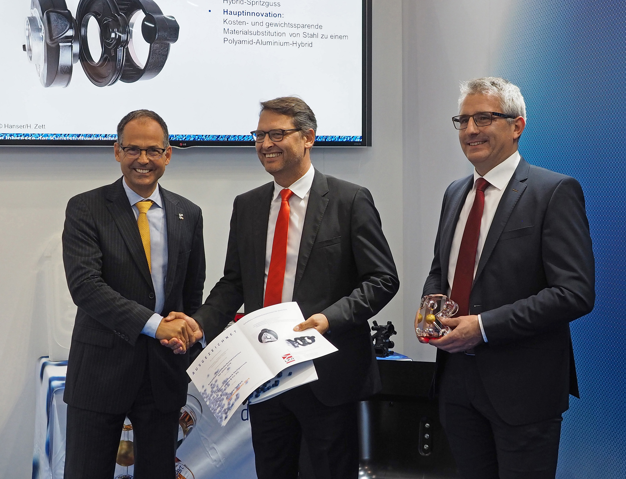 Alle drei Jahre vergibt der Verband Technische Kunststoffprodukte im GKV den TecPart Innovationspreis an herausragend innovative Unternehmen. Im Umfeld der besten kunststoffverarbeitenden Zulieferer Deutschlands wurde LKH für die Präzisionsfertigung von Komponenten für schaltbare Mehrkammerluftfedern von Fahrzeugen ausgezeichnet. „Dieser Preis zeigt, dass sich unsere kontinuierlichen und hohen Investitionen der letzten Jahre in Know-how und Produktionstechnologie gelohnt haben“, erklärte Volker Hindermann, Geschäftsführer bei LKH, nach der Verleihung.