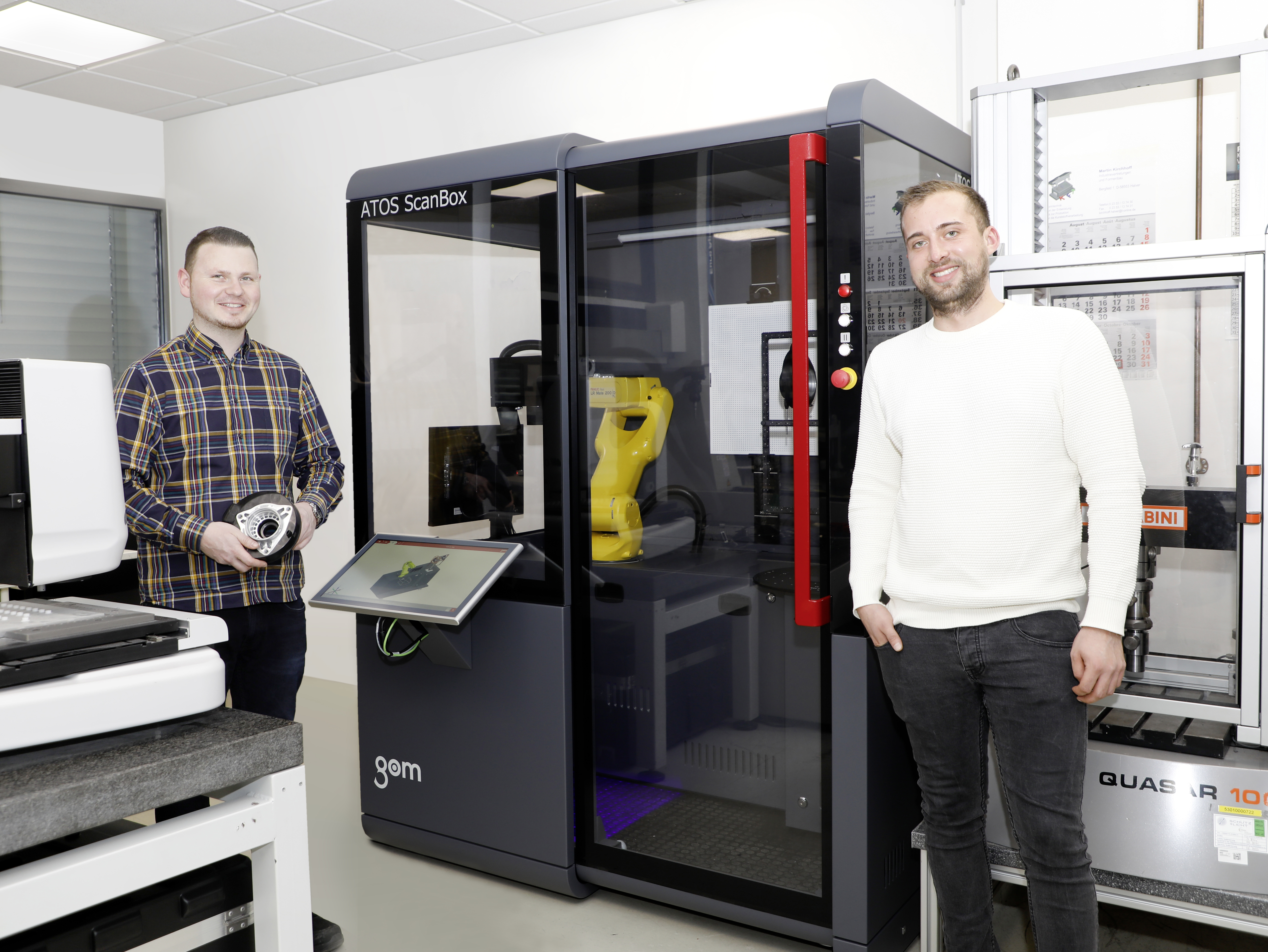 BildmaterialBild: „Die ATOS ScanBox bringt viele Vorteile im Fertigungsprozess und der Qualitätskontrolle“, freuen sich Marcel Becker (l.) und Yannick Heinz. „Durchsatz erhöhen, weniger Ausschuss produzieren, Qualitätssicherung standardisieren.“