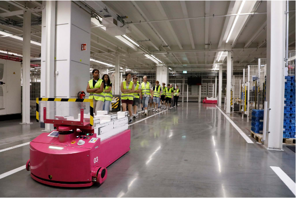 Bei der Besichtigung von des automatisierten Rittal Werks konnten die Teilnehmerinnen und Teilnehmer die digitalisierten Produktionsprozesse live in Aktion sehen. „Ich wusste gar nicht das es fahrende Autos gibt die von alleine die Materialien von einer Ecke zur anderen fahren“, sagt eine Schülerin begeistert.
