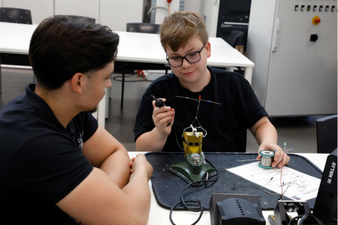„Wie cool ist das denn“, platze es aus einem Schüler raus, während er mit gespannten Augen die Ausbildungswerkstatt der Friedhelm Loh Group am Standort in Haiger erkundete. Konkret war die simulierte Produktionsstätte in Miniformat gemeint, wo die Schülerinnen und Schüler über ein Panel die Produktion Linie der Smart Factory simulieren können. Bei den Fachinformatikern konnten sich die jungen Besucherinnen und Besucher an Programmier-Codes praktisch ausprobieren und gemeinsam mit den Technischen Produktdesignern eigene 3D-CAD-Zeichnungen erstellen. „Für mich als IT begeisterter ist das super spannend zu sehen, welche Möglichkeiten es bei euch in diesem Bereich gibt.“, sagte ein Schüler am Stand der Fachinformatiker.