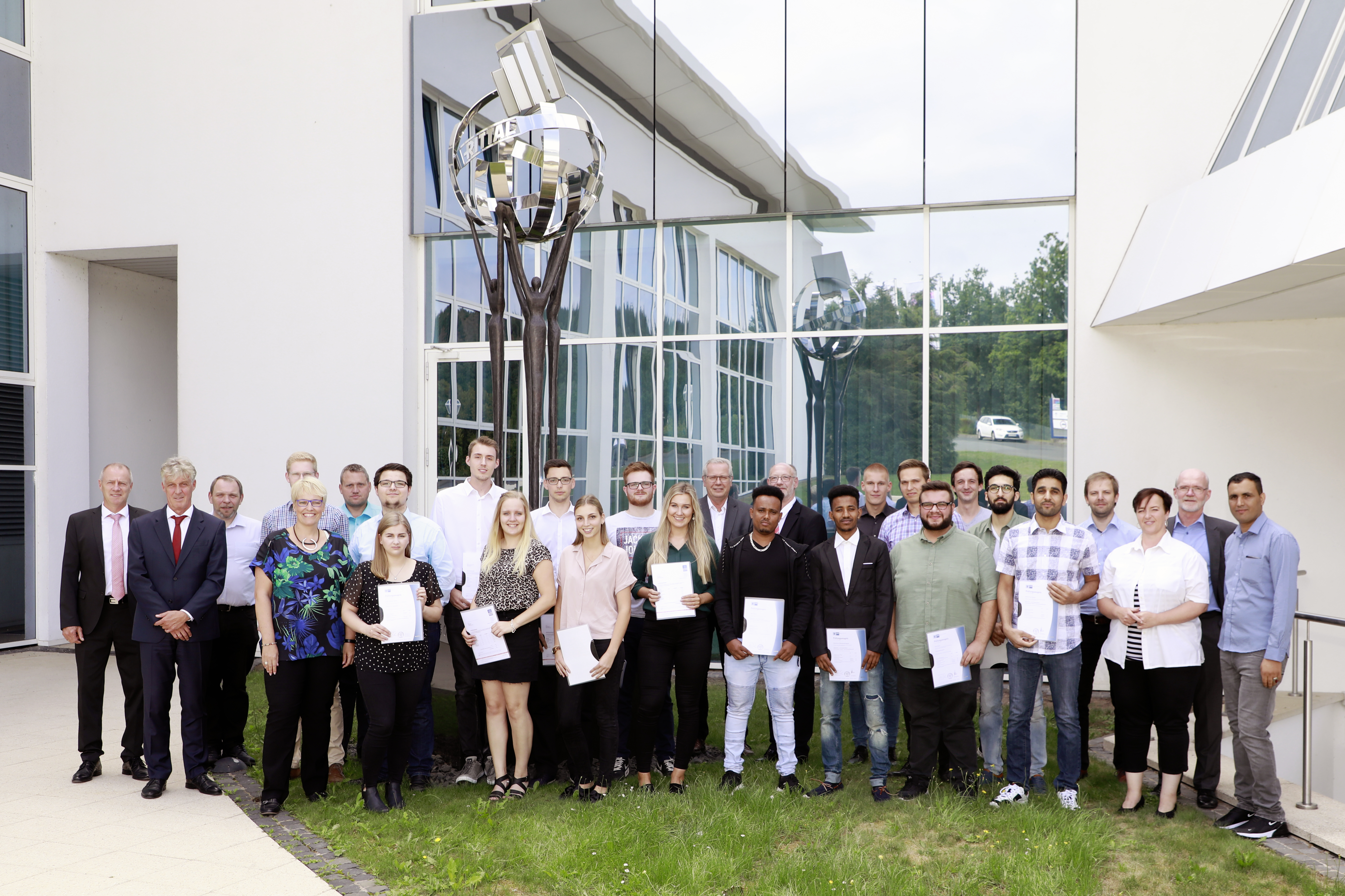 Unter den Auszubildenden waren zudem fünf Geflüchtete, die die Ausbildung zum Maschinen- und Anlagenführer erfolgreich abschließen konnten. Ein besonderer Applaus ging dabei an Fnan Kahsay: Er erreichte das beste Abschlusszeugnis und wurde dafür als Klassenbester in der Berufsschule geehrt. „Diese herausragende Leistung ist nicht nur ein großer persönlicher Erfolg, sondern auch ein Zeichen gelebter Integration“, freute sich Dr. Steffen mit den Absolventen: „Die Friedhelm Loh Group gehört zu den ersten Unternehmen Deutschlands, die sich entschieden für Integration eingesetzt und diese auch umgesetzt haben. Das macht mich persönlich sehr stolz.“