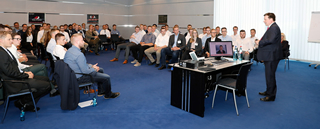 Ob sich eher der Ausbau von lokalen Mod-Centern (Modifikationszentren zum Bearbeiten von Standard-Gehäusen nach Kundenwunsch) oder lokale Produktionsstätten lohne, um Zölle zu vermeiden und somit attraktiv für Kunden zu sein, wollten die jungen Studenten wissen. „Rittal hat mit einigen großen Werken und den lukrativen Mod-Centern ein starkes Netzwerk. So können wir unsere Kunden weltweit sehr gut mit qualitativ hochwertigen, zum Teil maßgeschneiderten, Produkten versorgen. Trotzdem muss man das Thema immer wieder im Einzelfall ansehen, um Kosten- oder Marktvorteile zu realisieren. Mit dem GDC (Global Distribution Center) arbeiten wir daran Standardprodukte europaweit in 24 Stunden zu liefern. Das alles macht uns für Kunden besonders attraktiv.“