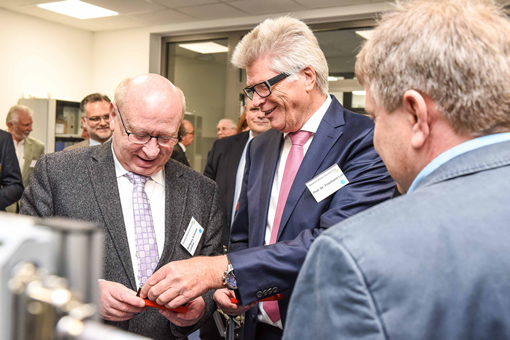 Bild 2: Auch Landrat Wolfgang Schuster (links) ist stolz, dass Hessens erste Lernfabrik 4.0 im Lahn-Dill-Kreis steht.