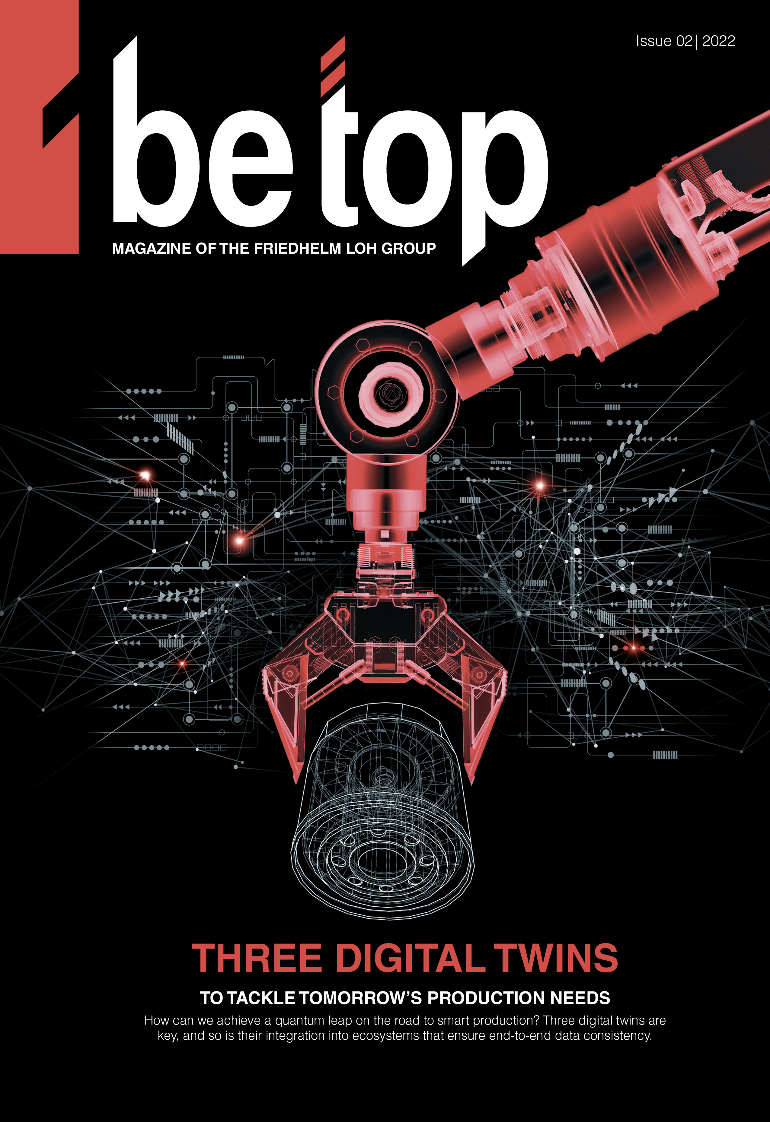 Herborn, 07 November 2022 – What is the status quo and which challenges and opportunities are the digital transformation in industry currently raising? The magazine’s readers receive evaluations and assessments with Professor Oliver Riedel, Director of the Fraunhofer IAO, and Markus Asch, CEO of Rittal International and Rittal Software Systems in the title interview. The cover story shows how the networking of three digital twins – the digital twins of the plant (“automation twin”), the “product twin,” and the twin of the manufacturing process (the “production twin”) – helps to optimise transparency and thus efficiency in production processes. The Friedhelm Loh Group companies can support this with their respective domain knowledge.
