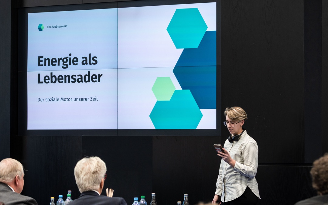 Für ihre professionelle Erarbeitung der Ergebnisse sowie die hervorragende Präsentation bekamen die Gruppenmitglieder viel Lob von der Jury, insbesondere auch von Prof. Dr. Loh. Er gab allen Auszubildenden im Anschluss an die Preisverleihung noch wichtige Impulse mit auf den Weg: „Die Energie, die in Ihnen allen steckt, ist wichtig. Machen Sie etwas mit Ihrer Energie, im Beruf, im Hobby, in Ihren Freundschaften. Denn die Zukunft ist heute!“ Auch richtete er seine Dankbarkeit an diejenigen, die unseren heutigen Wohlstand erarbeitet haben und sprach von einem „Privileg, was wir heute alles haben“. Eng damit verknüpft appellierte er an die jungen Menschen, bei all den Informationen und Einflüssen der modernen Welt nicht den Blick für das Wesentliche zu verlieren: „Intelligenz besteht auch im Abschalten. Schalten Sie ab und konzentrieren Sie sich auf die Dinge im Leben, die für Sie wirklich wichtig sind.“ Und er sprach den Azubis, die sichtlich beeindruckt waren von so vielen starken Worten, Mut für alles Kommende zu: „Nehmen Sie ihr Leben in die Hand. Jeder hat eine Chance!“