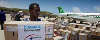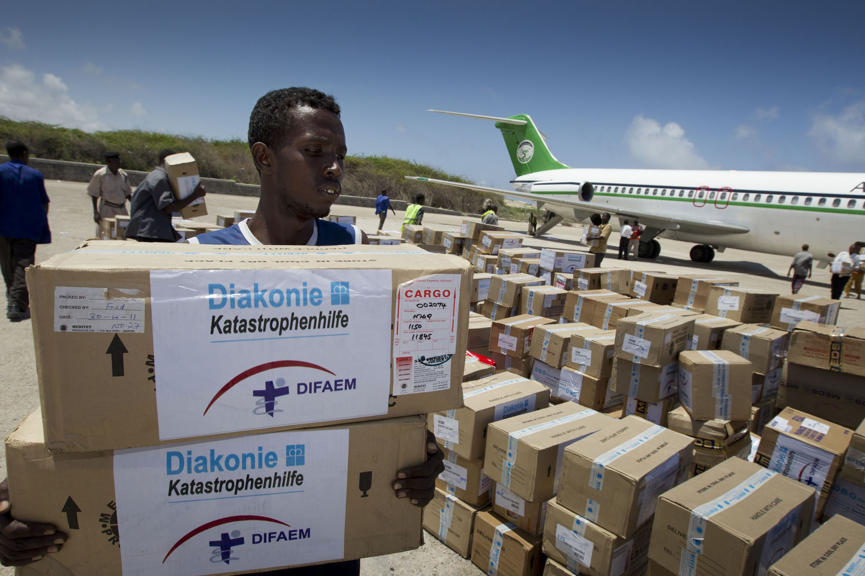 Bild 1: Die zweite Medikamentenlieferung der Diakonie Katastrophenhilfe mit neun Tonnen Hilfsgütern ist sicher in Somalia angekommen. Fotos: Christoph Püschner / Diakonie Katastrophenhilfe.