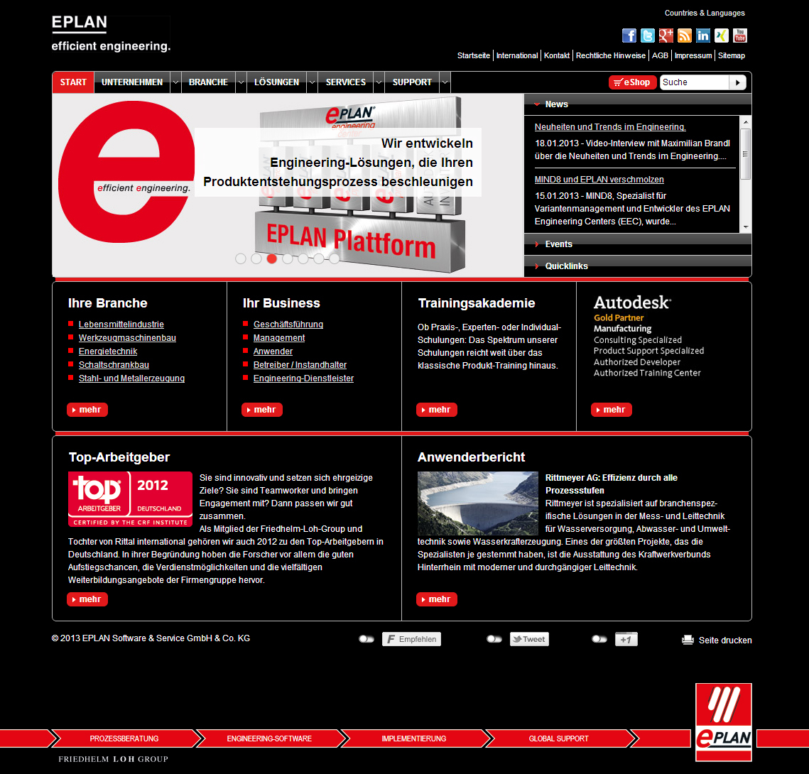 Bild 2-3: Im einheitlichen Erscheinungsbild der Friedhelm Loh Group präsentiert sich der Web-Auftritt von Eplan mit zahlreichen zusätzlichen Inhalten.
