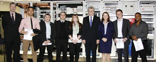 Bild 1: Freuten sich über den 1. Platz (v. l.): Mario Kacalla, Tolgahan Bilen, Eduard Huwa, Hannes Hermann, Tamara Weber, Friedhelm Loh, Valentina Herb, Marcel Valentin und Dawit Selemon.