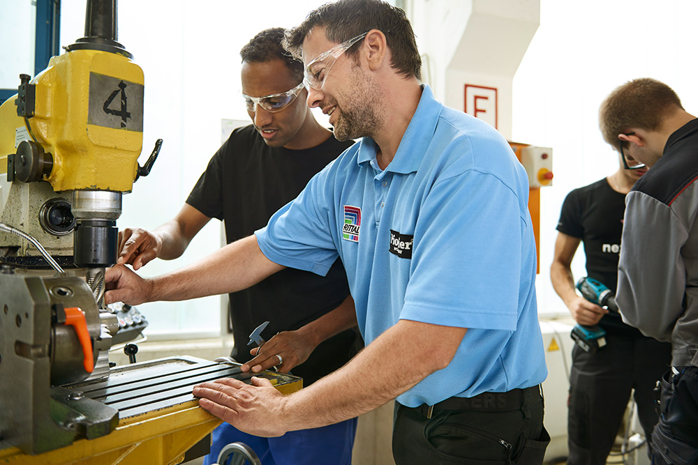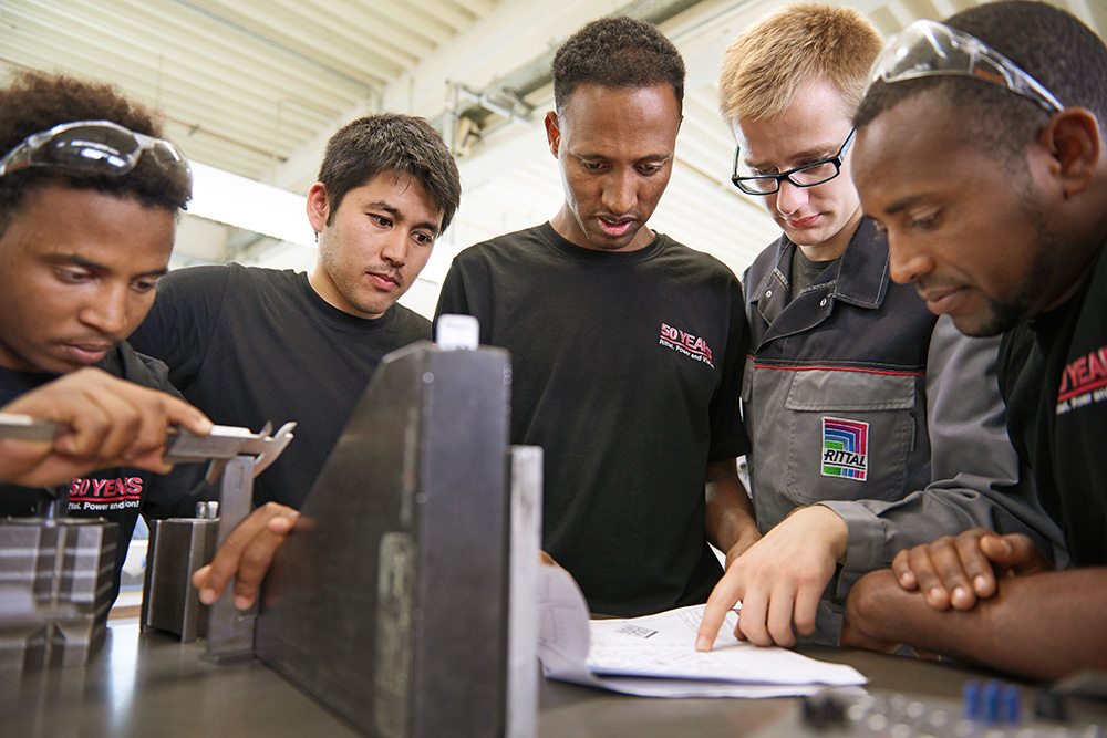 Als wegweisend bezeichnete Andreas Tielmann, Geschäftsführer der Industrie- und Handelskammer Lahn-Dill, im August die Maßnahmen zur Qualifizierung von Flüchtlingen in der Friedhelm Loh Group: „Wir werden uns dafür einsetzen, dass weitere Unternehmen diesem Beispiel folgen.“ Mit einem Pilotprojekt hatte die mittelhessische Friedhelm Loh Group in Kooperation mit dem Lahn-Dill-Kreis das Thema Qualifizierung von Flüchtlingen für eine Ausbildung angestoßen. Das Familienunternehmen ermöglichte acht hochmotivierten jungen Flüchtlingen ein dreimonatiges Praktikum bei Rittal, der größten Tochtergesellschaft der Friedhelm Loh Group. Unterstützt von engagierten Ausbildern, Azubi-Paten und einer Deutschlehrerin der Loh Academy erlangten alle acht Praktikanten im Juli 2015 ihre Ausbildungsreife, zwei von ihnen sind seit September in der Ausbildung zum Maschinen- und Anlagenführer bei Rittal.