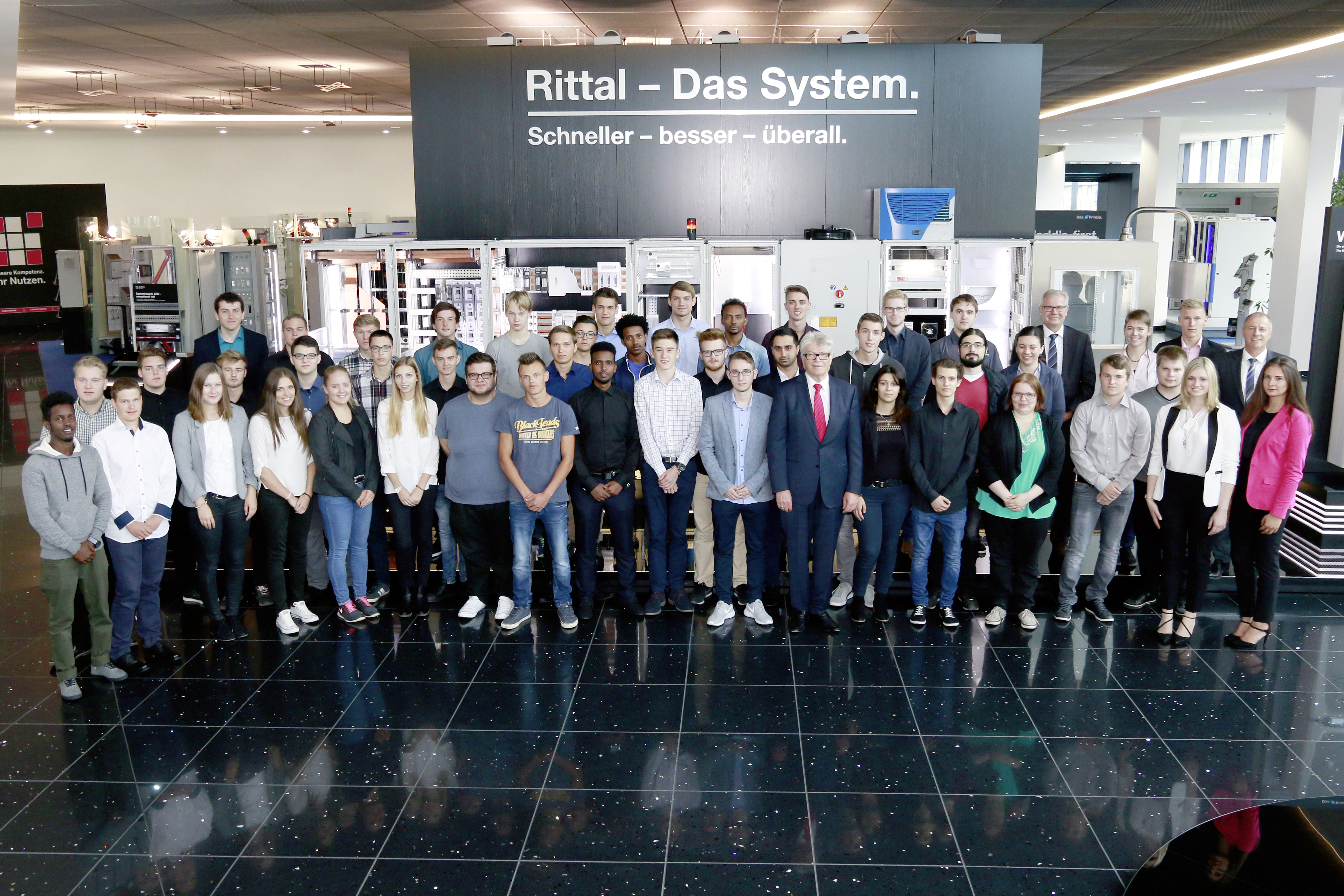 Mit dabei waren auch drei Flüchtlinge aus Eritrea und Somalia, die im Rahmen eines Integrationsprojekts der Friedhelm Loh Group ein dreimonatiges Praktikum bei Rittal absolviert und sich für eine Ausbildung zum Maschinen- und Anlagenführer qualifiziert hatten. Zwei von ihnen sind nun frisch gebackene Azubis, ein weiterer Flüchtling kann nach einem Einstiegsqualifizierungsjahr zur weiteren Verbesserung der Deutschkenntnisse in die Ausbildung einsteigen. Sie folgen damit dem Beispiel von Khaibar Fatehzada und Eyobel Gebreyesus, die bereits im vergangenen Jahr durch das Pilotprojekt der Friedhelm Loh Group zur Qualifizierung von Flüchtlingen in ihre Ausbildung bei Rittal starten konnten – eine Chance auf eine sichere, friedliche Zukunft.