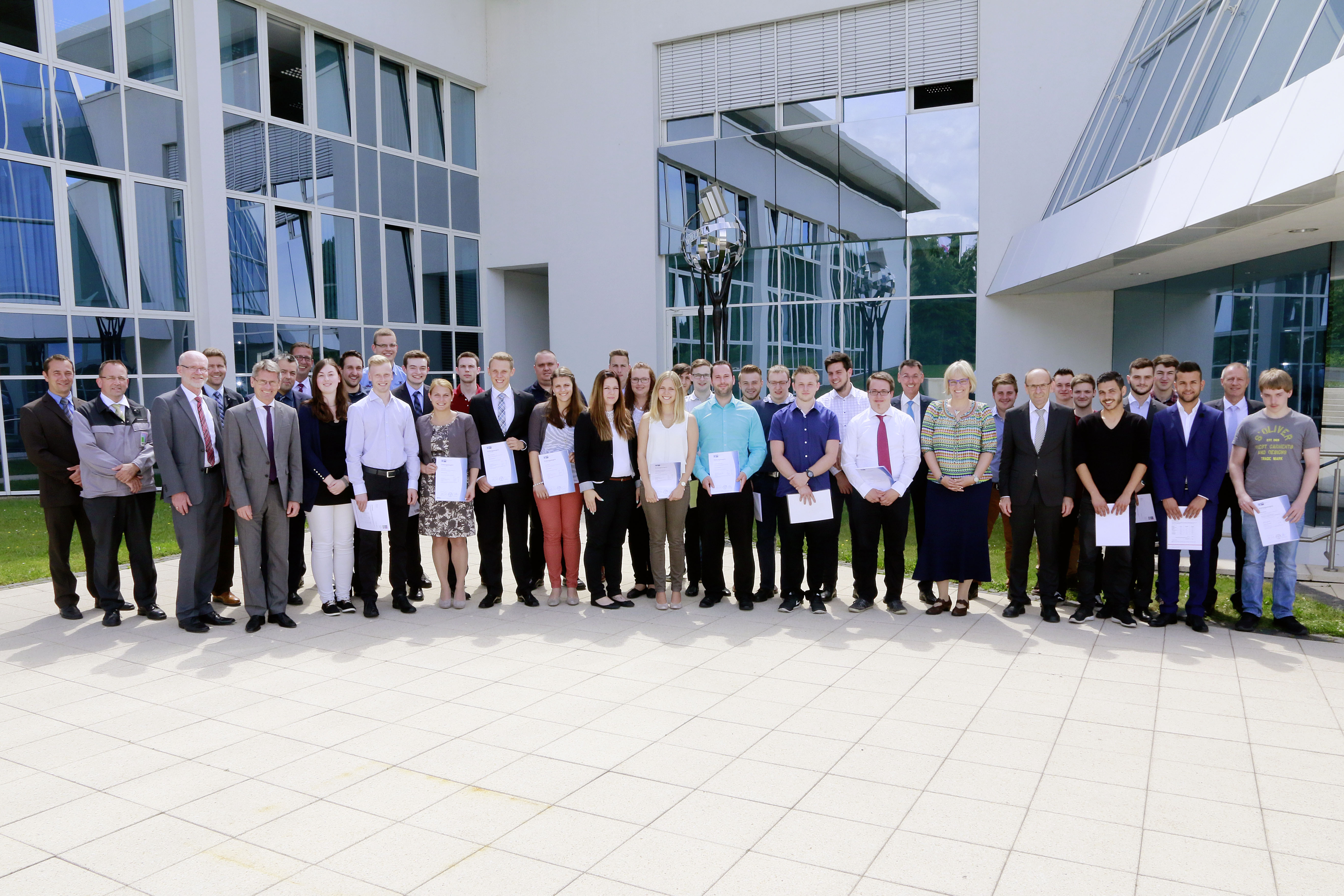 BildmaterialBild 1: 73 Auszubildende konnte die Friedhelm Loh Group in diesem Jahr nach erfolgreichem Abschluss von Ausbildung oder Studium feierlich ins Berufsleben verabschieden. 28 von ihnen hatten ihre Prüfung sogar vorgezogen und bereits Anfang des Jahres ihre Ausbildung beendet. „Wir haben ganz tolle Leistungen gesehen“, betonte Matthias Hecker, Leiter der gewerblich-technischen Ausbildung bei Rittal (2. von rechts).