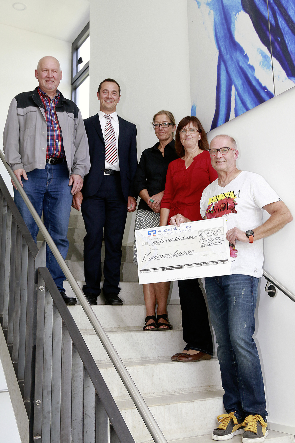 04.09.2015. Seit vielen Jahren unterstützen Burbacher Unternehmen wie Rittal die ortsansässige Pflegeeinrichtung „Kinderzuhause“ für behinderte Mitmenschen. Ende August überreichten der Schaltschrankhersteller und der Arbeitskreis Burbacher Unternehmen dem „Förderverein Kinderzuhause“ einen Scheck über 1.300 Euro.