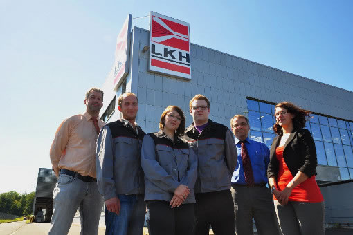 Bild 1: Die neuen Auszubildenden von LKH mit ihren Ausbildern: (v.l.n.r.) Mario Kacalla (Ausbilder für die gewerblichen Azubis), Iwan Bräul, Jenny Katharina Deis, Matthias Fein, Guido Schuster (Ausbilder für die kaufmännischen Auszubildenden) und Anja Opala