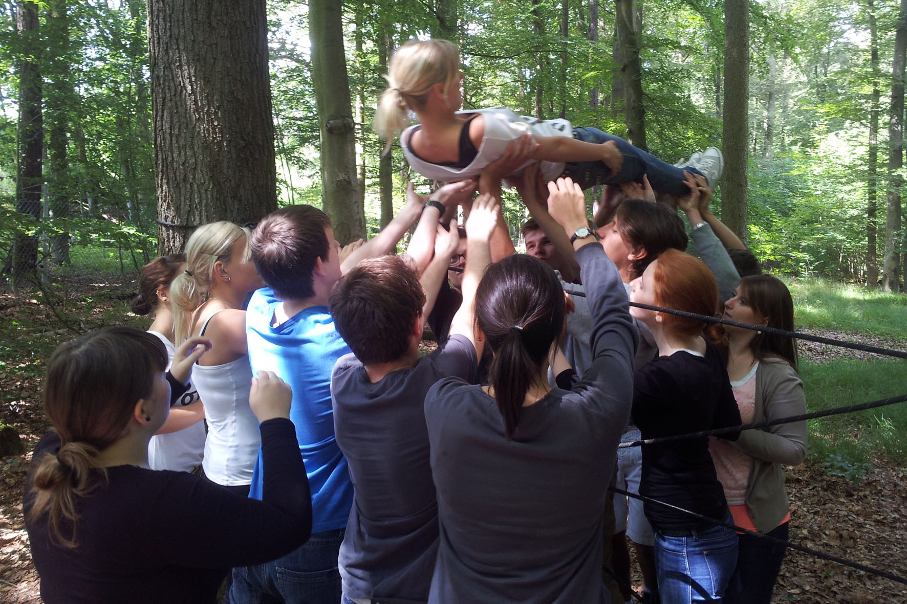 Bild 2: Studentin Marie Habicht (Mitte) vertraut ihren Kommilitonen: Gemeinsame Aktivitäten förderten das Zusammengehörigkeitsgefühl.