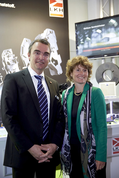 Die Ministerin informierte sich im Gespräch mit Geschäftsführer Dr. Guido Stannek über aktuelle Innovationen und neueste Technologien im Kunststoffspritzguss bei LKH. Auf der diesjährigen Hannover Messe zeigt LKH unter anderem Bauteile für kinematische Systeme zum Öffnen und Schließen von PKW-Heckklappen und Bauteile für die Dieselvorwärmung. Als einer der führenden deutschen Kunststoffverarbeiter hat sich das Unternehmen im Jahr 2010 in Heiligenroth angesiedelt. Es gehört zur internationalen Friedhelm Loh Group mit Sitz in Haiger. Stannek verwies in dem Gespräch auch auf einen besonderen Höhepunkt in der Firmengeschichte in diesem Jahr: Mitte Juni wird das Unternehmen unter Beteiligung hochkarätiger Repräsentaten aus Politik und Wirtschaft sein 30-jähriges Bestehen unter dem Motto "Next Step for LKH" feiern