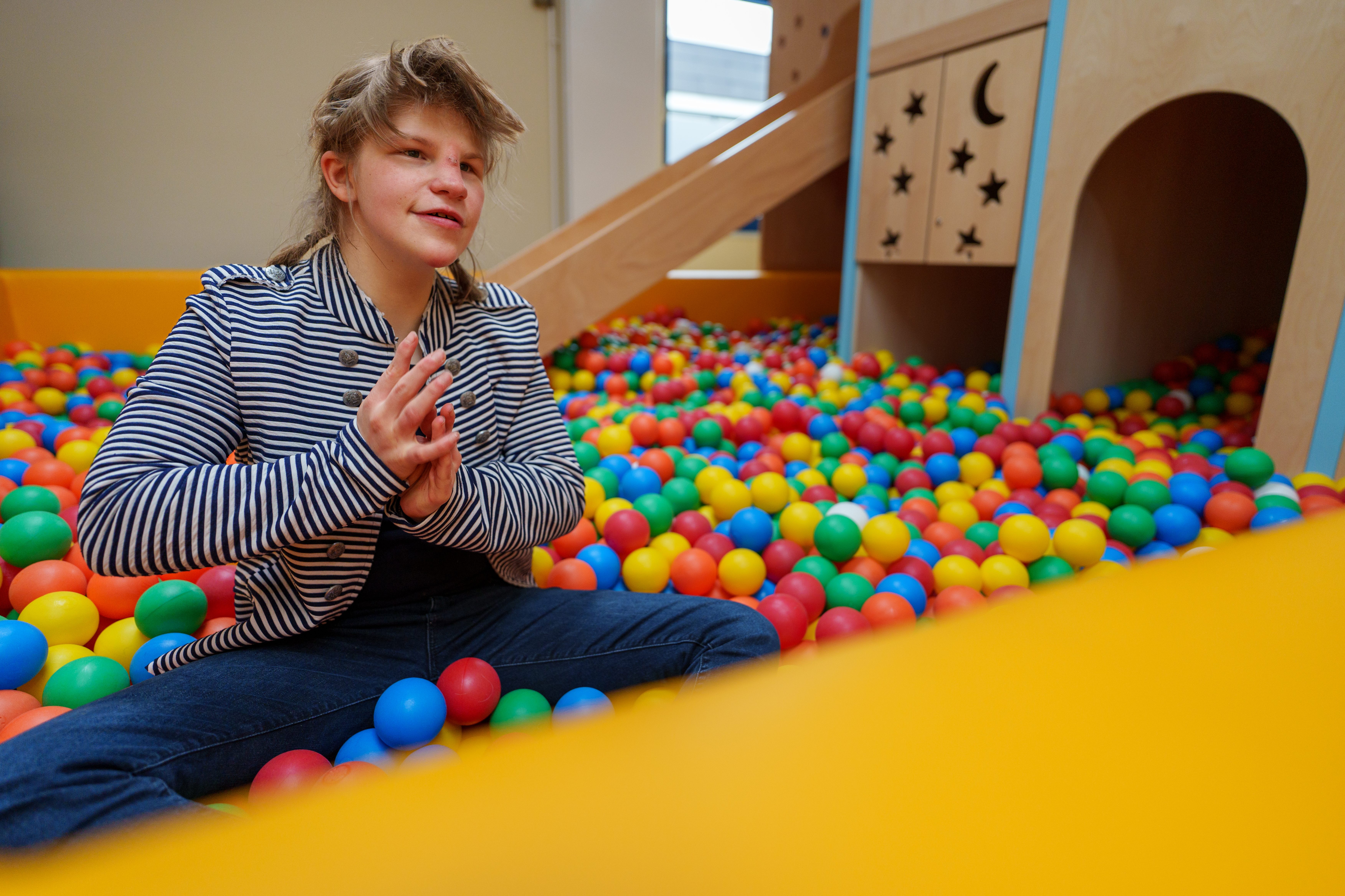 Bild 2: Ein weiteres Beispiel, wofür die Mitarbeiterspende genutzt wird: die Förderschule am Hephata-Stammgelände in Schwalmstadt. Hier erhalten Kinder und Jugendliche wie Raja die Unterstützung, die sie für ihre Bedürfnisse benötigen.