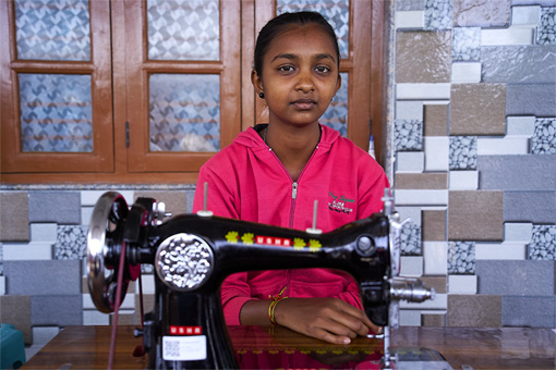 BildmaterialBild 1: Es sind Menschen wie Danjaa aus Indien, denen die Hilfsgelder Hoffnung schenken. Dank eines Hilfsprojekts der Debora Foundation hat sie eine Nähmaschine erhalten und lernt nun in einer Nähschule, wie man Masken oder Schuluniformen näht.
