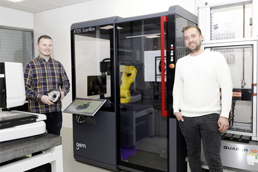 BildmaterialBild: „Die ATOS ScanBox bringt viele Vorteile im Fertigungsprozess und der Qualitätskontrolle“, freuen sich Marcel Becker (l.) und Yannick Heinz. „Durchsatz erhöhen, weniger Ausschuss produzieren, Qualitätssicherung standardisieren.“