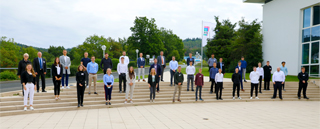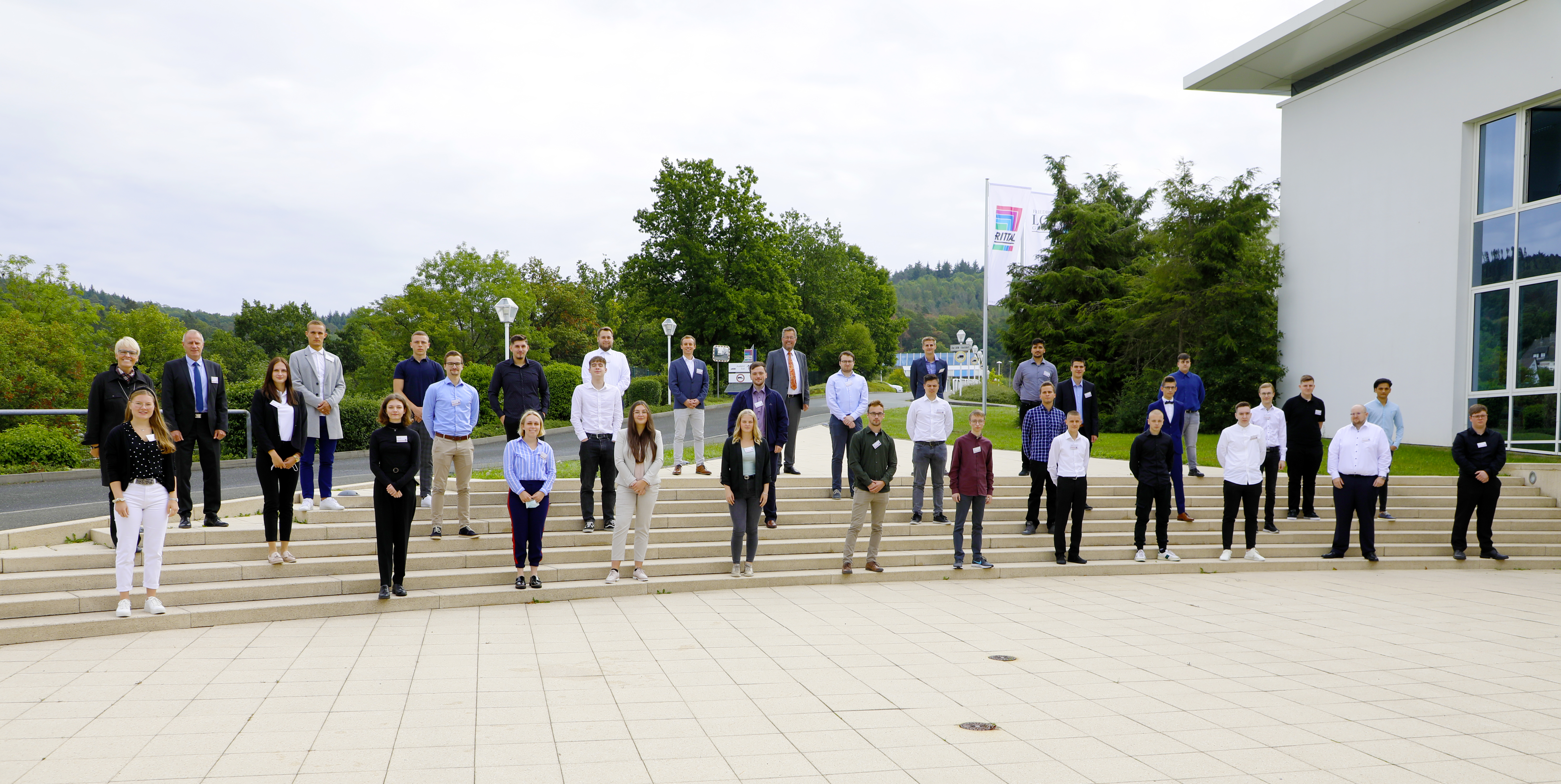 BildmaterialBild: Dr. Karl-Ulrich Köhler (hinten Mitte), Vorsitzender der Geschäftsführung bei Rittal, begrüßt die neuen Auszubildenden der Friedhelm Loh Group im Rittal Headquarter in Herborn.