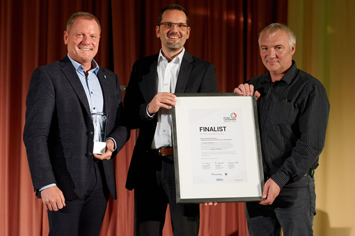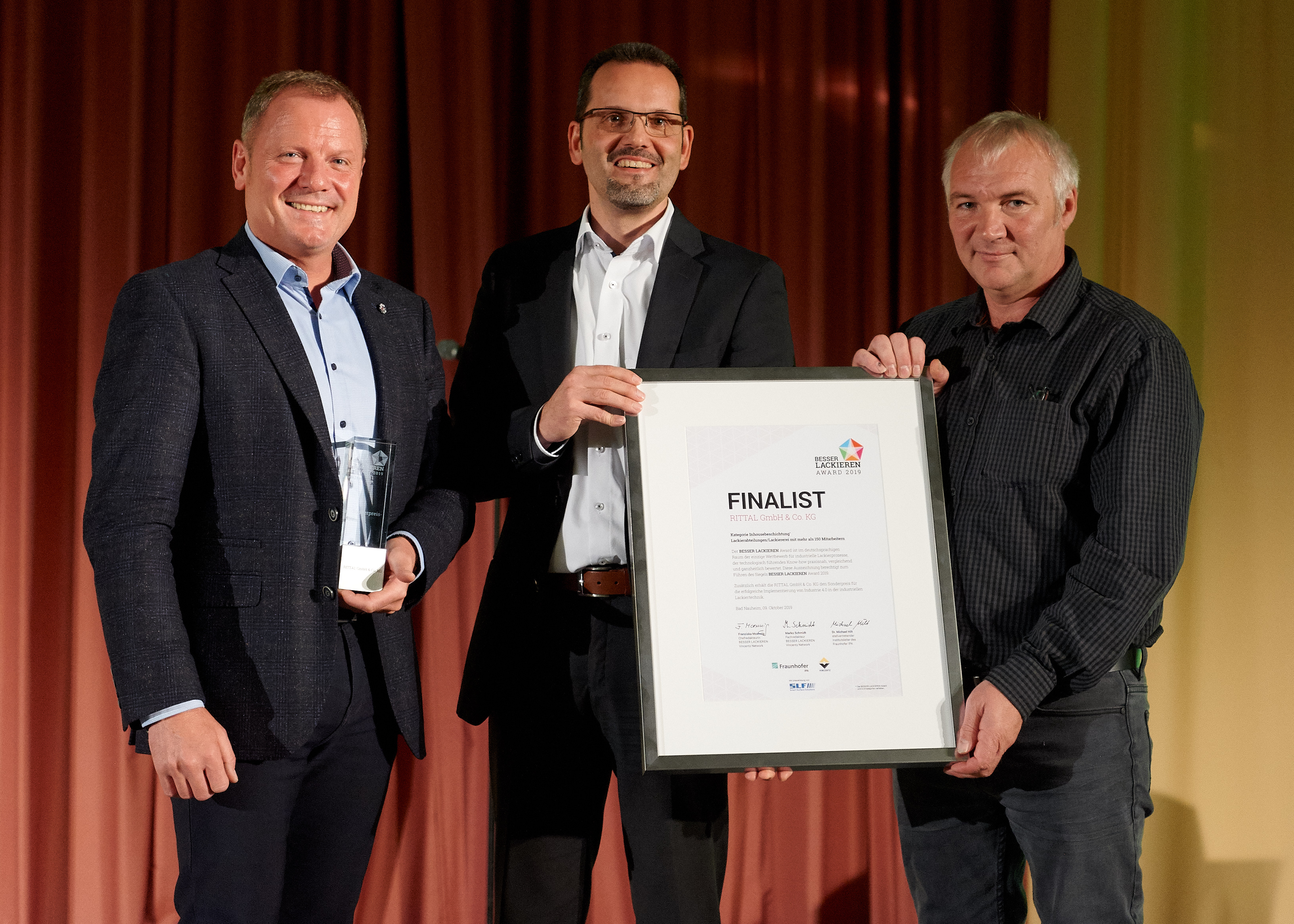 BildmaterialBild 1: Heiko Denner, Tobias Heilmann und Andreas Kirsch (v.l.n.r.) von Rittal nahmen den Sonderpreis für innovative Digitalisierung beim Besser Lackieren Award entgegen.