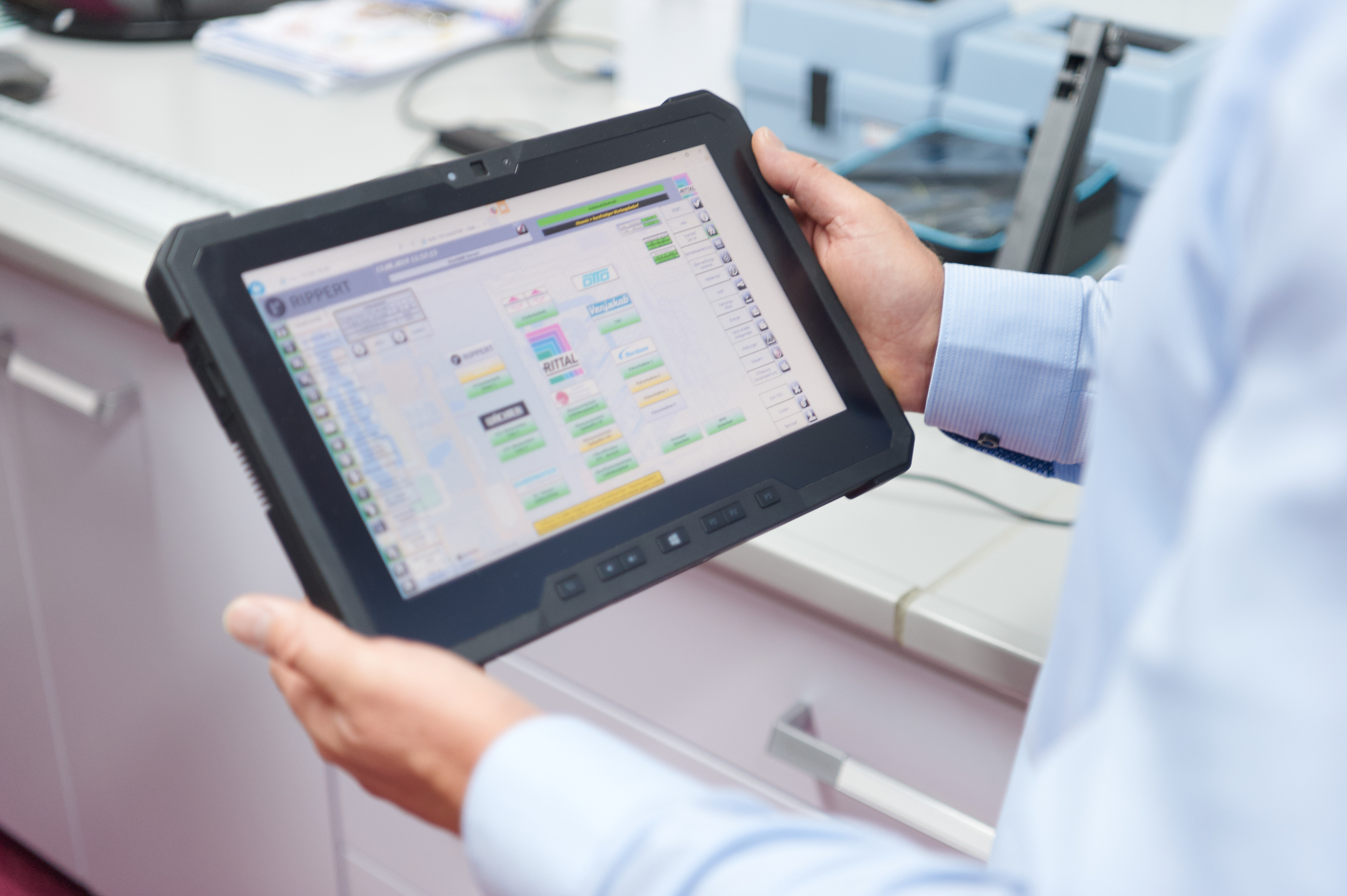 Bild 3: Die gesamte 4-stöckige Lackieranlage in Haiger lässt sich mit dem Tablet steuern.