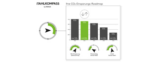 BildmaterialBild 1: Der neue Stahlkompass liefert den Kunden Scope-3 Emissionen der Lieferungen des Vorjahres und stellt dann zukünftige Optimierungsvarianten dar. Die Kunden planen mit Support von Stahlo die Emissionseinsparungen und das benötigte Budget.