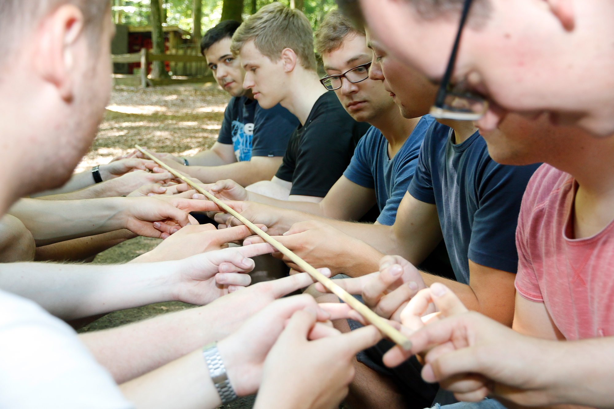BildmaterialBild 1: Beim Ausflug der neuen Studierenden der Friedhelm Loh Group ins Outdoorzentrum Lahntal galt es, Ehrgeiz mit Teamwork zu verbinden.