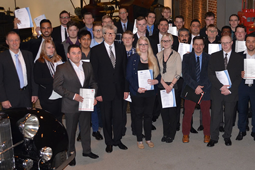 Nach einer anstrengenden Arbeitswoche setzen sich wohl die wenigstens freiwillig am Wochenende an den Schreibtisch. Ganz anders 16 Rittal Mitarbeiter, die jetzt erfolgreich ihren Berufsabschluss als Maschinen- und Anlagenführer nachgeholt haben. Berufsbegleitend haben sie fast alle Samstage eines ganzen Jahres in der Loh Academy für den Vorbereitungskurs investiert und sich trotz Schichtarbeit den Lehrstoff einer zweijährigen Ausbildung erarbeitet. Die Mühen wurden nun belohnt – alle Mitarbeiter bestanden die Abschlussprüfung der Industrie- und Handelskammer mit Bravour. Friedhelm Loh, Inhaber und Vorstandsvorsitzender der Friedhelm Loh Group, überreichte feierlich die lang ersehnten Zeugnisse und lobte die Fachkräfte für Fleiß, Mut und Motivation: "Sie haben verstanden, dass eine erfolgreiche Zukunft im Kopf anfängt. Schneller – besser – überall, das Motto von Rittal haben Sie verinnerlicht. Und das zahlt sich aus."