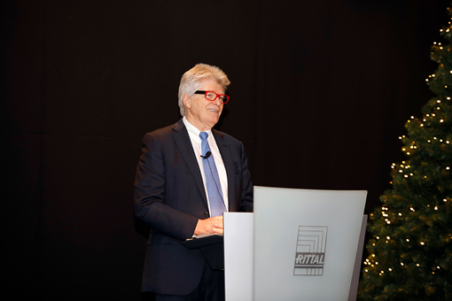 Sich die Vergangenheit vor Augen zu führen, sie einzuordnen und die großen Leistungen zu würdigen – das gehört zu einer Jubilarfeier dazu. Und so erinnerte sich Prof. Dr. Friedhelm Loh am 10. Dezember 2018 gemeinsam mit über 160 Arbeitsjubilaren an die Meilensteine der Jahre 1978, 1983 und 2008. Der Umzug der Kleingehäuseproduktion von Rittershausen nach Herborn vor 40 Jahren sei damals nicht einfach gewesen. Das könne man durchaus mit der heutigen Situation rund um das neue Werk in Haiger vergleichen. Am Ende hat sich die Entscheidung für das Unternehmen als richtig erwiesen. "Ohne den Standort Herborn kann man sich Rittal nicht vorstellen", bekräftigte der Unternehmer seine damalige Entschlossenheit.
