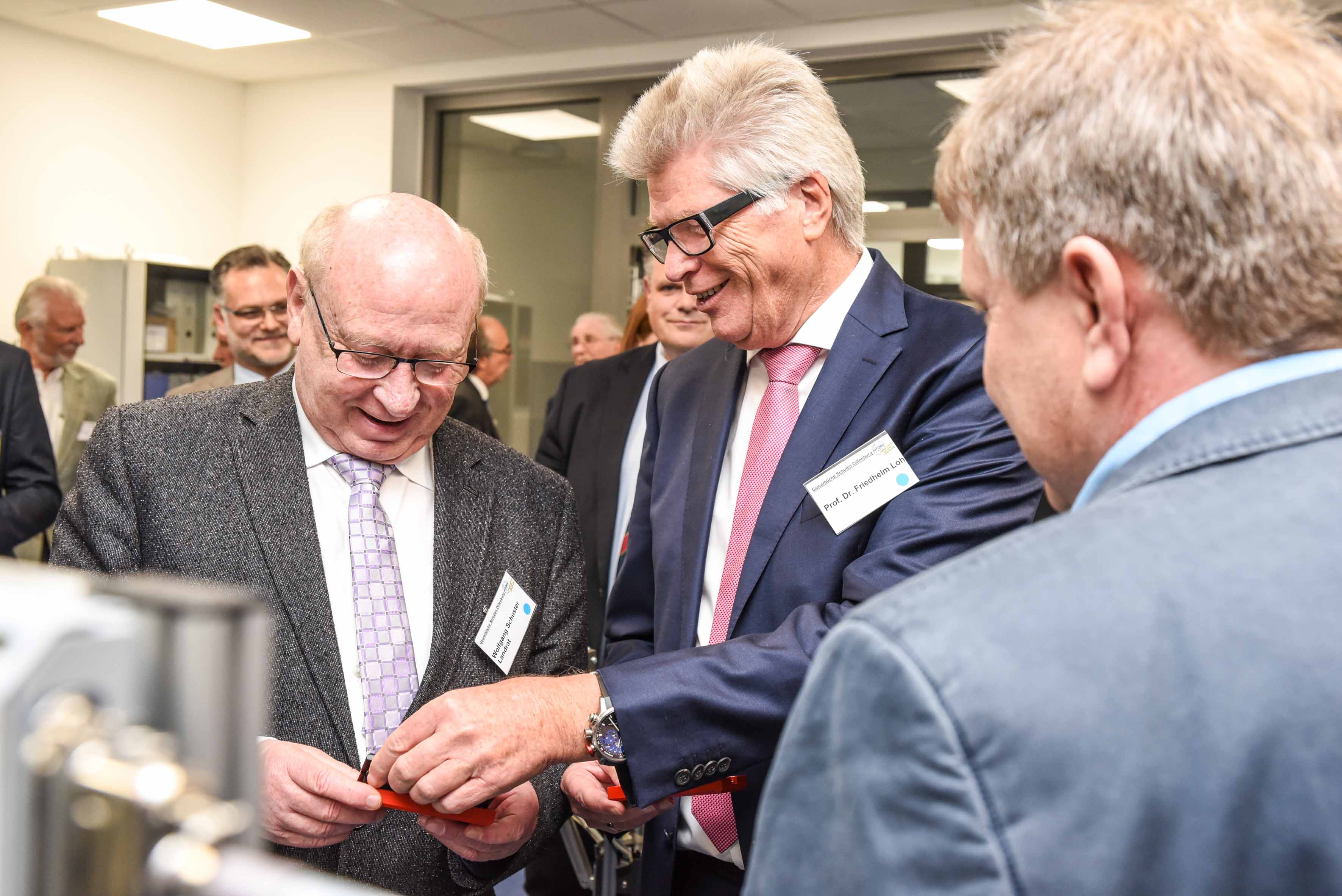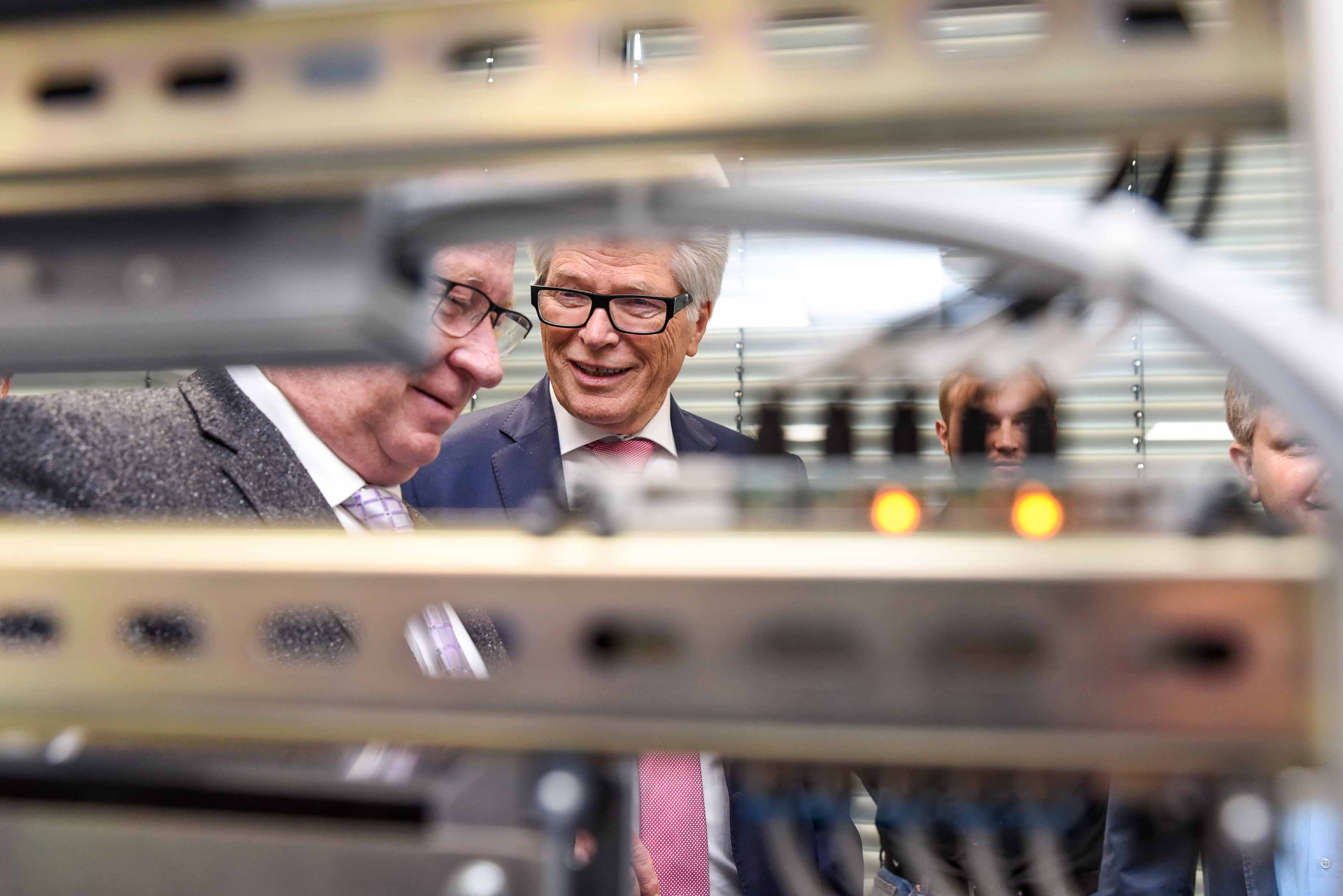 Bild 2: Auch Landrat Wolfgang Schuster (links) ist stolz, dass Hessens erste Lernfabrik 4.0 im Lahn-Dill-Kreis steht.